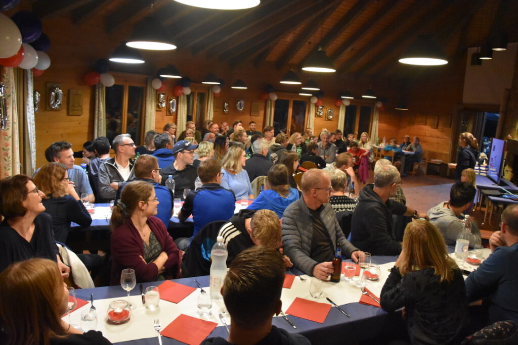 Nach dem Apéro gab es ein feines Essen vom Grill, welches vom Beck Meier aus Mägenwil zubereitet wurde. Anschliessend wurde ein kleines Quiz durchgeführt, bei welchem alle Anwesenden ihr Wissen über den Trampolinsport und den Verein zeigen konnten. Dort mussten beispielsweise Fragen beantwortet werden, wie: «Wieviel kostet eine Trampolinfeder?» oder «Wie viele Monate gibt es den Trampolin-Club Waltenschwil bereits?». Während das Quiz dann ausgewertet wurde, richtete sich Eliane Bigler, Präsidentin des Vereins, noch mit ein paar Worten an die Gäste. Bei der Rangverkündigung zum Quiz durften sich die drei höchstplatzierten Gruppen über ein kleines Präsent freuen, wobei der 3. Platz zuerst noch mit einer Stechfrage entschieden werden musste. Zum Abschluss wurde dann noch das Dessertbuffet eröffnet und der Abend wurde in geselliger Runde noch zu Ende genossen.